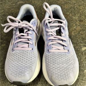Stylish Brooks Glycerin 21 GTS athletic shoes in lavender with orange accents. Comfortable and durable design, these are the support version of the glycerin so they have added arch support great for pronation/flat feet. I work in a shoe store so they are very lightly worn and kept in great condition. They have also been spray with stain repellent spray and disinfectant.