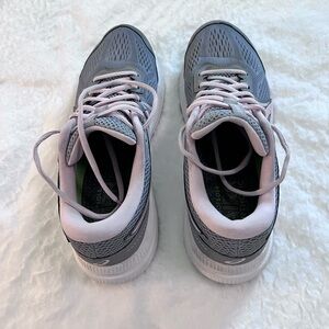 Comfortable running shoes in gray and pink. Ideal for daily runs or casual outings.