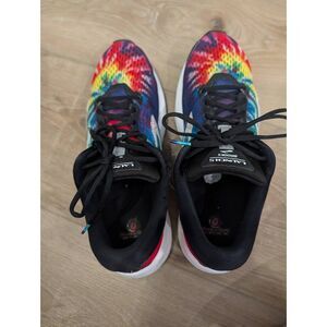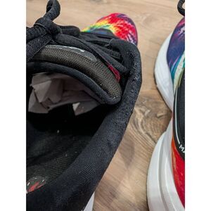 Excellent overall condition with minimal outsole wear, colors are bright with no stains or fading noted. One small rough spot on inner upper of left shoe; no holes. Original laces included with custom tie-dye aglets from the Rock ’n’ Roll Marathon series.