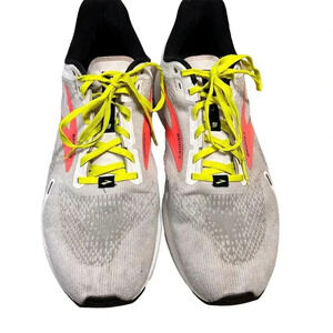 Get ready to hit the ground running with the Brooks Launch 9 sneakers in Gray. Designed for women who crave performance and style, these athletic shoes offer a lightweight and breathable experience. The responsive cushioning and adaptive fit ensure every step feels just right, whether you're tackling a morning jog or enjoying a casual day out. With a low-top design and lace-up closure, these sneakers are perfect for both running and everyday wear. Pre-owned with normal wear and some staining on the top of the toes. Additionally, these shoes come from a smoke-free pet-free home and have been either cleaned or are in clean condition. Size: 12.5.