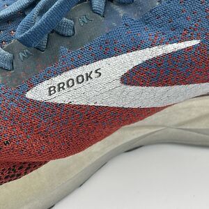 The Brooks Levitate 2 Mens Size 13D Running Shoes in Chilli, Navy, and Black are a stylish and high-performance option for athletic individuals. Featuring a low top design, lace-up closure, and cushioned comfort, these sneakers are perfect for gym training, walking, cross training, crossfit, and running. The shoe's flecked pattern and colorful theme make it a standout choice for those looking for a fashionable and functional athletic shoe. Made with breathable knit materials, the Brooks Levitate 2 shoes are designed for durability and support during various physical activities. NOTE SEE LAST PHOTO. TOE RUBBER STOP IS SLIGHTLY LOOSE. DOES NOT AFFECT PERFORMANCE. PRICED ACCORDINGLY. RETAIL $126.00