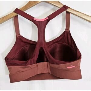 Brooks Maroon Dare Racerback Wireless Sports Bra 350073 Size 34C. Excellent pre-owned condition with no rips, stains or tears
