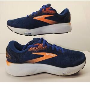 Brooks have chip on midsole. Details also shown in pics. Size is Men 8 in dark blue color