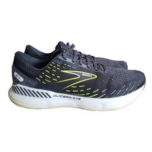 Experience the fusion of comfort and support with the Brooks Men's Glycerin GTS 20, a stellar choice for runners and fitness enthusiasts alike. Crafted in a sleek ebony, white, and nightlife color palette, these athletic shoes are designed to cater to a variety of activities, including running, jogging, and gym workouts. The size 12 medium (D) width ensures a snug yet comfortable fit for most foot sizes, while the low-top shaft style offers ancle freedom during your fitness regimen. The Glycerin GTS 20 sneakers boast a durable rubber outsole for excellent traction and a soft fabric lining for blister-free comfort. Equipped with a responsive foam insole, these shoes provide unparalleled support and cushioning for all-day wear. Whether you're hitting the pavement or the treadmill, the Brooks Glycerin 20 will be your go-to pair for any activity that comes your way.