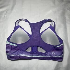 Brooks Moving Comfort Sports Bra Size L Purple Racerback Wireless Max Support