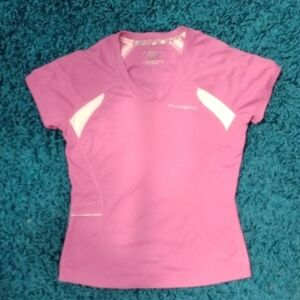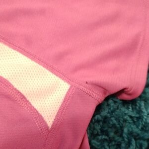 Stay comfortable and stylish with this pink athletic top. Perfect for workouts or casual wear. It has a tiny hole on the left arm, please see photo and video!
