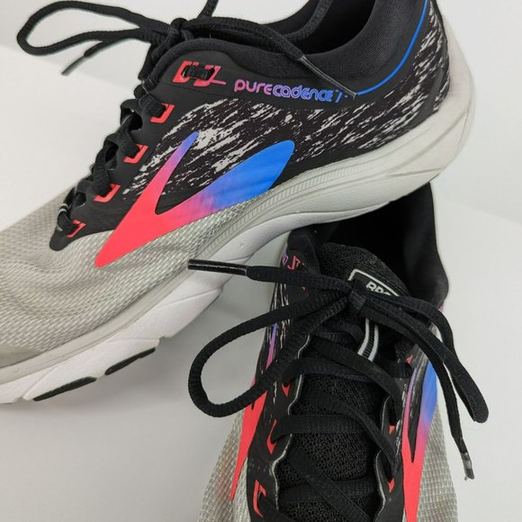 Brooks Pure Cadence 7 Running Shoes 10 Grey Black Neon Pink Blue Athletic Sport