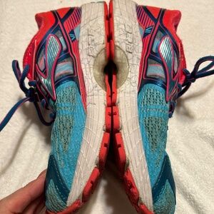 Great condition. Love the colors. Aqua blue, and pink. Great for running, walking or just running errands. Great shoes.