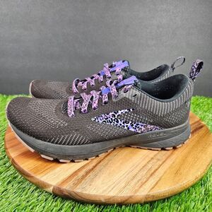 Brooks Revel 5 Shoes Womens 7.5 Black Purple Cheetah Print Sneakers 1203611B087