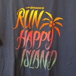 Brooks Run Happy Island Blue Casual Running T-Shirt Unisex Size Large L Jerzees