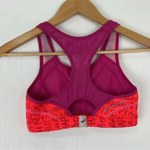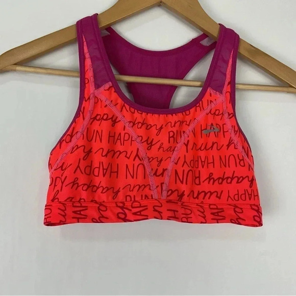 Brooks Run Happy Racerback Sports Bra. Womens Size Small 32ABC- 34B. Mesh look in the back. To me it looks like it runs small. Measures 12” across. No modeling or trades. C2