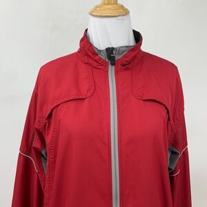 Brooks Running Jacket Women M Medium Red Zip Up Vented Back Athletic Windbreaker