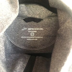 This grey Brooks running jacket is a size small and has never been worn. In great condition. It's a little longer, so it hits right around the hips making it a super flattering cut. I'm selling the jacket because it was always a little too snug on me.