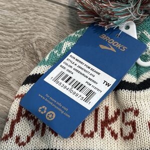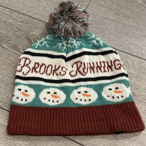 Brooks Running Unisex Hat New Beanie Run Merry Pom Beanie Snowman Green Maroon