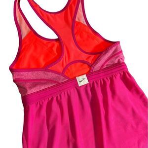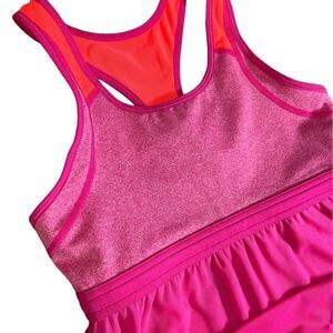 Brooks Running tank top sheer racer back orange fuchsia size small