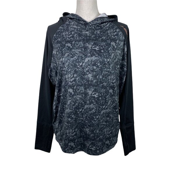 Brooks Size Small Hoodie Gray Black Pullover Sweatshirt Thumbholes Lightweight