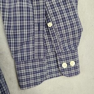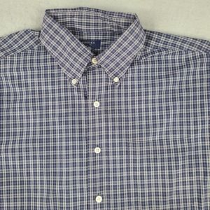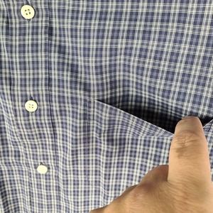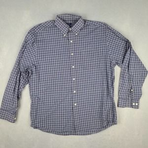 Brooks Sport Shirt Men's Large Blue White Plaid Button Down 100% Cotton