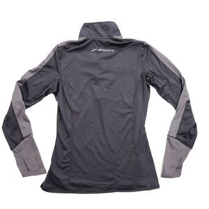 Brooks True Runner 1/4 Zip Pullover XS Women Gray Stand Up Spellout Thumb Holes