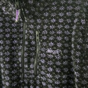 This Brooks vest jacket for women is the perfect addition to your wardrobe. Made with Polartec fleece material, it is warm and cozy, perfect for the colder seasons of fall, winter, and spring. The mid-length vest has a half zip neckline and a zip closure, with a geometric pattern in a beautiful purple color.