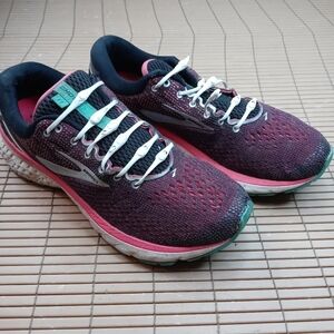 Brooks Woman's Ghost 11 1202771B017 Red Running Shoes Sneakers Size 10.5M. Toe cap repair on right shoe see last pic. A9p.