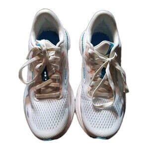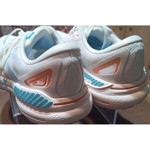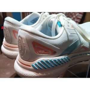 The Brooks Women's Adrenaline GTS 23 Support Running Shoes are designed for comfort and support, with a lace-up closure for a secure fit. These athletic sneakers feature a rubber outsole for durability and a breathable synthetic lining for added comfort. The white, ecru, turquoise, and coral color scheme adds a stylish touch to these shoes, perfect for casual wear or running and jogging activities. Made by the trusted brand Brooks, these shoes are a reliable choice for active women looking for both style and performance.