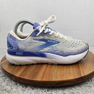 Brooks Womens 7B Ghost 16 White Amparo Blue Limpet Shell Athletic Running Shoe