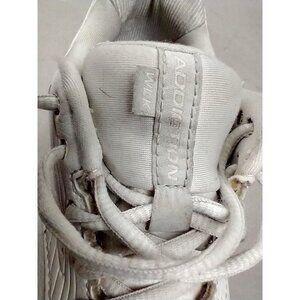 The product is a pair of Brooks Women's Addiction Walker 2 Sneakers in size 9 2A with a white leather upper. These lace-up sneakers feature a low top design with a solid pattern and logo accents. The outsole is made of rubber for slip resistance, and the shoes are designed for activities like gym training, walking, crossfit, and running. With cushioning, breathable, and comfortable features, these sneakers are perfect for outdoor, athleisure, and sports-themed footwear. The Brooks Addiction Walker 2 model is known for its quality construction and performance in various athletic activities.