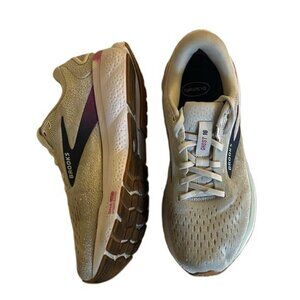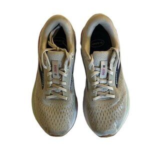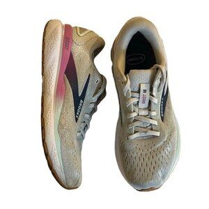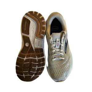 The product is a pair of Brooks Women’s Ghost 16 Neutral Running Shoes in a white, grey, and estate blue color combination, size 9 medium. These athletic sneakers feature a breathable mesh upper material and belong to the Brooks Ghost product line. The shoes have a sleek and stylish design, perfect for running and other physical activities. The Brooks Ghost 16 model offers comfort and support for women looking for a reliable athletic shoe for their workouts. Original insole not included (Dr. Scholls insole)