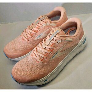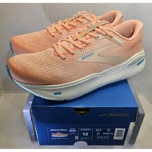 The product is a pair of Brooks Women's Ghost Max RUN & WALK Neutral Running Sneakers in size 12 medium. These sneakers feature lace-up closure, rubber outsole, and a low-top shoe shaft style. They are designed for various activities such as running, walking, and casual wear, with features like arch support, cushioning, and breathability. The sneakers come in a blend of papaya, apricot, and blue colors and are part of the Brooks Ghost product line. Made of synthetic upper material and foam insole, these sneakers offer comfort and performance for active women in any season.