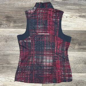 Pink and blue grid colorway full-zip pockets stand collar sleeveless reflective detail on the back athletic running jogging sporty sports athletic windproof athleisure.