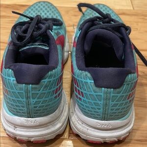 Dynamic Brooks Launch shoes for women. Aqua mesh with magenta accents. Ideal for running and workouts.