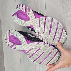 Experience comfort and style with Brooks women's running shoes. Featuring a sleek black design with vibrant purple accents, these shoes are perfect for your active lifestyle.