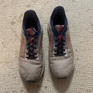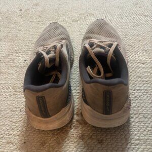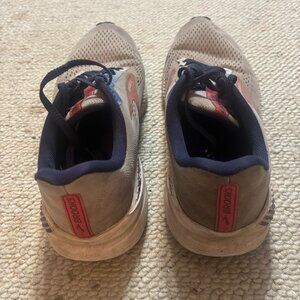These shoes have been used, and show wear. The fabric is stained, and there are scuff marks near the toes. The tread has been worn down, and there is wear on the inside of the toe box. Please see the pictures for more details, and ask for any clarifications before purchasing. The shoes still have a lot of life left in them.