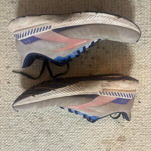 Brooks Women’s Launch 8 GTS Running Shoe - Size 9 Medium Width - 2 Pairs. One pair is the Primrose/Metallic color, and the other is the Lavender/Astral/Coral color.