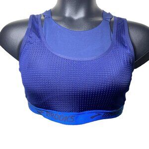 Brooks XXL Drive Mesh Run Navy Blue Bolt Sports Bra Layered Compression Wicking