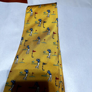 Brooks brothers Neck Tie Makers Yellow Golfers print Silk USA Vintage Golf