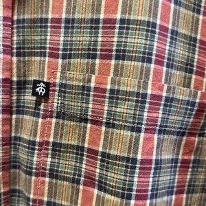 Preowned. One pocket short sleeve. Round bottom extended tail. 100% cotton proximately 25 inches pit to pit 33 1/2 inches long.