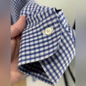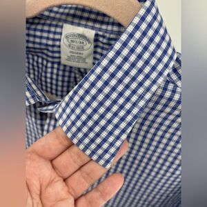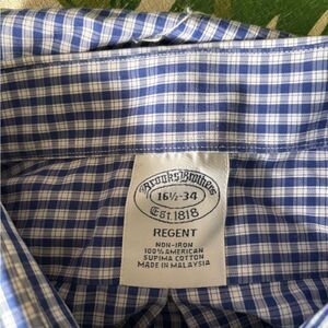 Brooks brothers regent blue gingham long sleeve button down 100% cotton 16.5/34