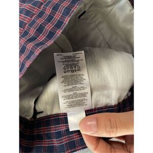 No flaws. Inseam is 9 inches. Perfect casual shorts with a preppy look. It is a cotton blend.