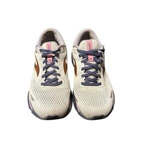 Good preowned condition, normal signs of wear on bottoms and insides. Women’s size 9 brooks ghost 15 running shoes. Gray and purple.