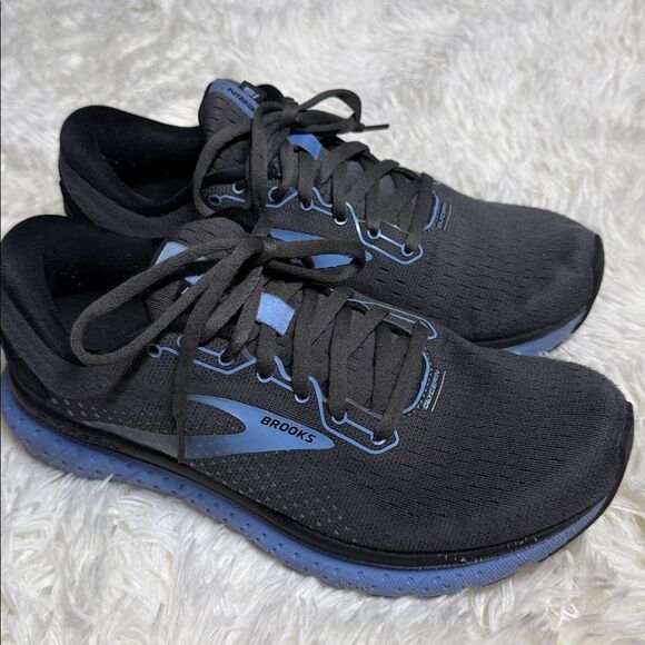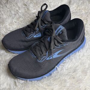 Sleek Brooks shoes in black and blue. Ideal for running and sports. Super comfortable ! Still lots of life to them . Pet & smoke free home!