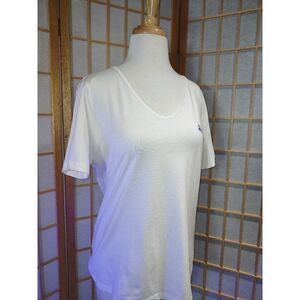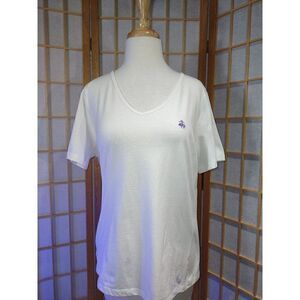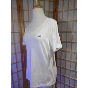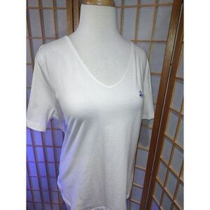 Classic V-neck logo t-shirt from Brooks Brothers. Size large. 100% cotton. Machine washable. Made in China. Excellent condition. Nonsmoking home.