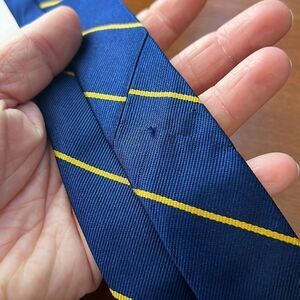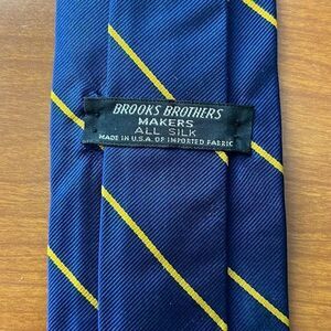 Brooks Brothers 100% Silk Mens Neck Tie Navy Blue W/ Yellow / Gold Stripes