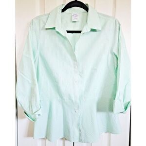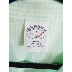 Brooks Brothers 346 Blouse Womens 8 Button Up Non Iron Top Green Gingham Checked.