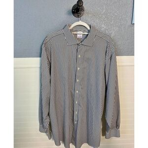 Brooks Brothers Black & White Stripe Button Down Collared Dress Shirt