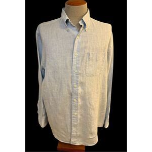 Light blue Irish Linen button down shirt by Brooks Brothers. Long Sleeves and button down collar. Size XL.