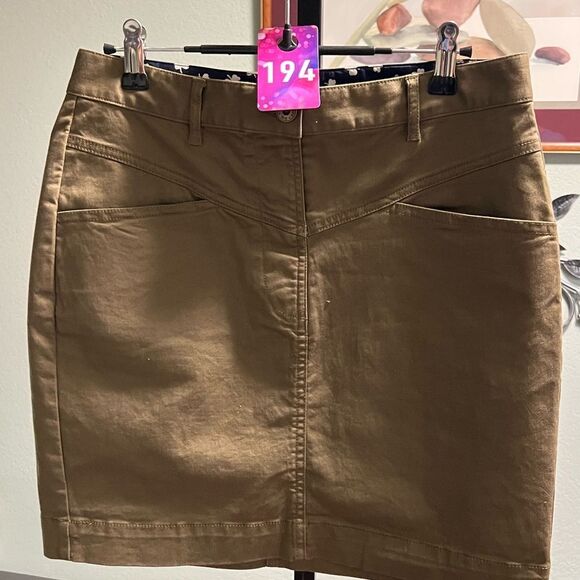 Chic olive pencil skirt by Brooks Brothers. Sleek design with front pockets. Ideal for professional and casual wear. Length 17”. From a smoke free home. New condition.