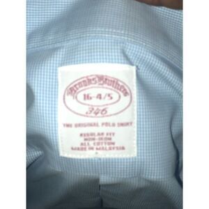 Great condition Brooks Brothers 346 Men's 16-4/5 Cotton Polo Shirt Long Sleeve Button Down. Small checkered design in light blue. (PreOwned)