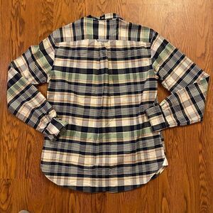 Blue, green, red & white plaid dress shirt. Partially buttons down. Red Fleece collection. Men's
