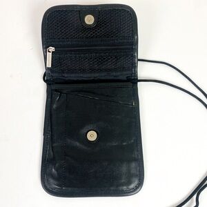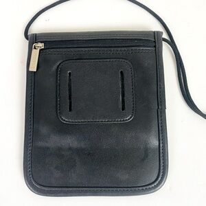 Brookstone Black Leather Passport Travel Crossbody/Belt Organizer 7” x 5.5”
